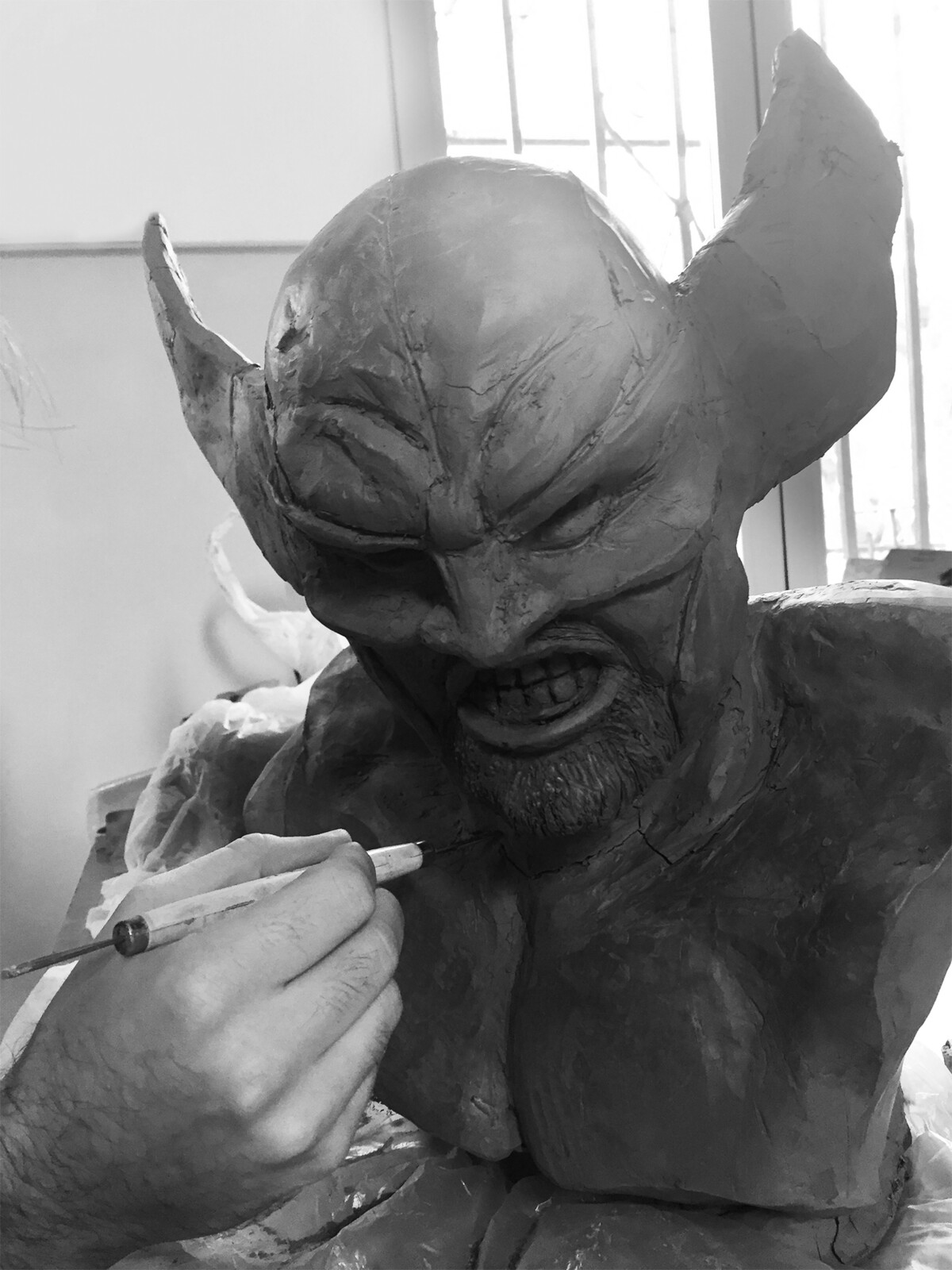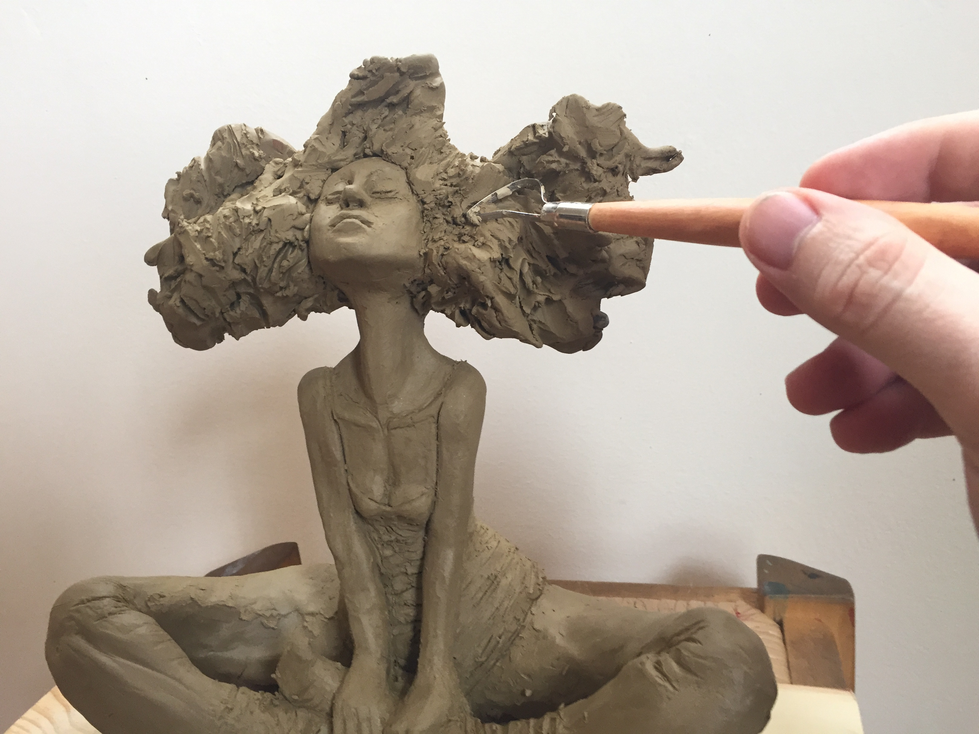 Traditional Sculpting in clay of a woman, inspired in a Valerie Hadida sculpture, Wolverine and practice of hands and feets.